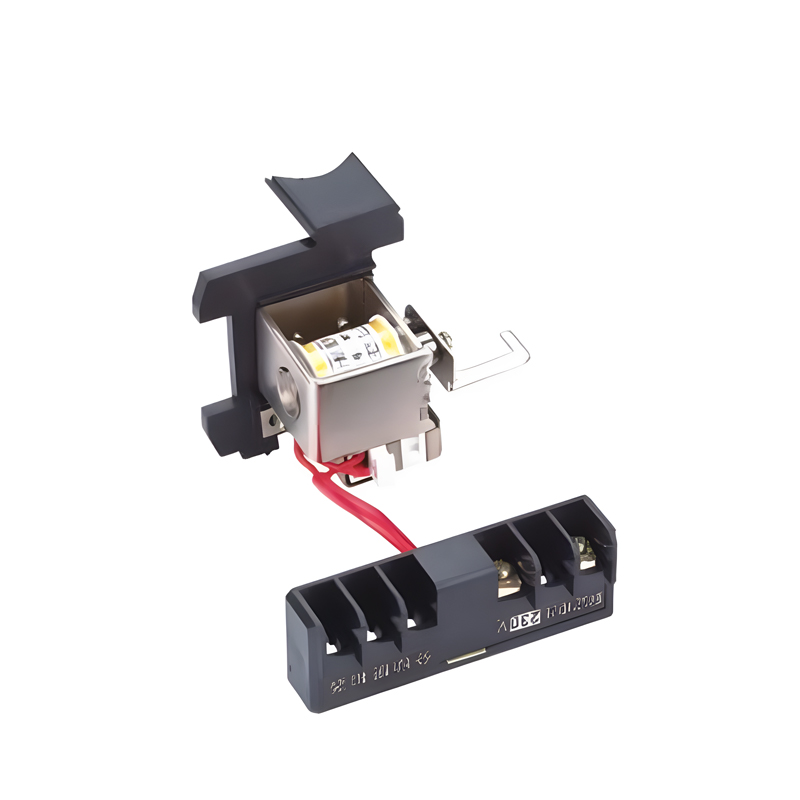 - يستخدم هذا المكون لفصل قاطع الدائرة عن بعد عند الحاجة، عادةً لإيقاف التشغيل في حالات الطوارئ أو التحكم عن بعد.
